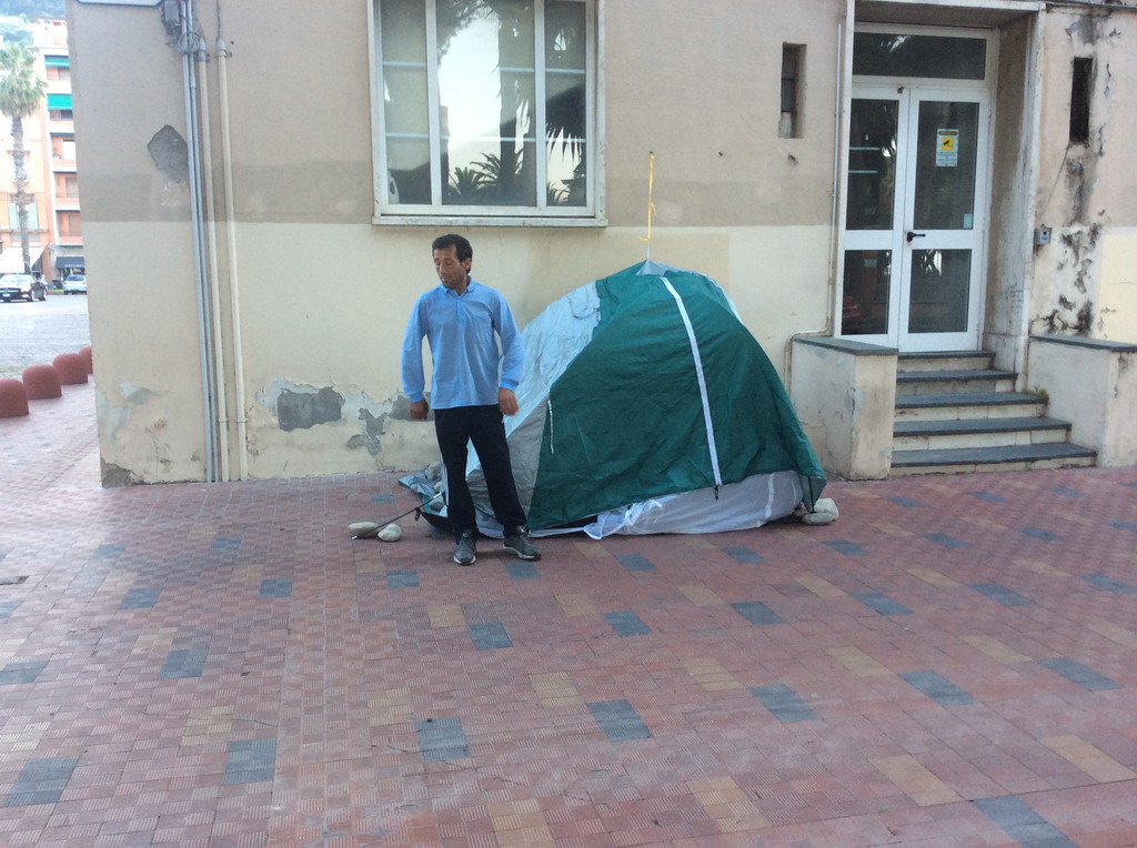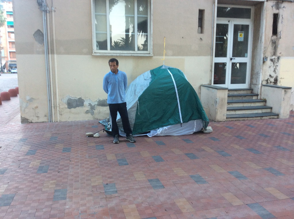 Sua moglie e le due bambine piccole ieri hanno terminato il loro soggiorno presso le suore di Ventimiglia Alta ed hanno passato la notte in tenda davanti al Comune. Una protesta disperata per far sentire la propria voce.