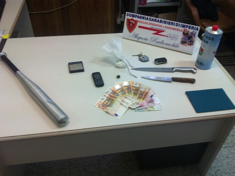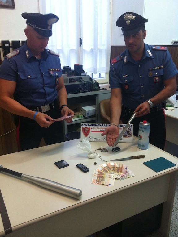 Imperia: i Carabinieri arrestano un sanremese pizzicato con 41 g. di cocaina ed una mazza da baseball in auto