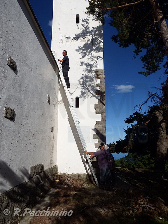 Intanto, nei giorni scorsi una squadra della Protezione civile e il presidente della sez. provinciale dell’EkoClub, si è recata a monte Bignone, per verificare le condizioni della strada e della chiesetta. Purtroppo la strada, come pubblicato ieri dal nostro giornale, è molto danneggiata e occorrerebbe un immediato intervento degli uffici comunali di Sanremo, addetti alle strade per ripristinare almeno provvisoriamente, il breve tratto che va dalle antenne della Rai all’ex funivia. Sfortunatamente si sono verificati anche atti di vandalismo operati da incoscienti e balordi, che hanno scagliato sassi pesanti contro il rosone della chiesa danneggiandolo. Purtroppo anche un fulmine o il forte vento hanno quasi abbattuto un albero vicino alla chiesetta, e fortunatamente non si è abbattuto sul tetto, perché ostacolato da un altro albero.