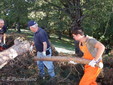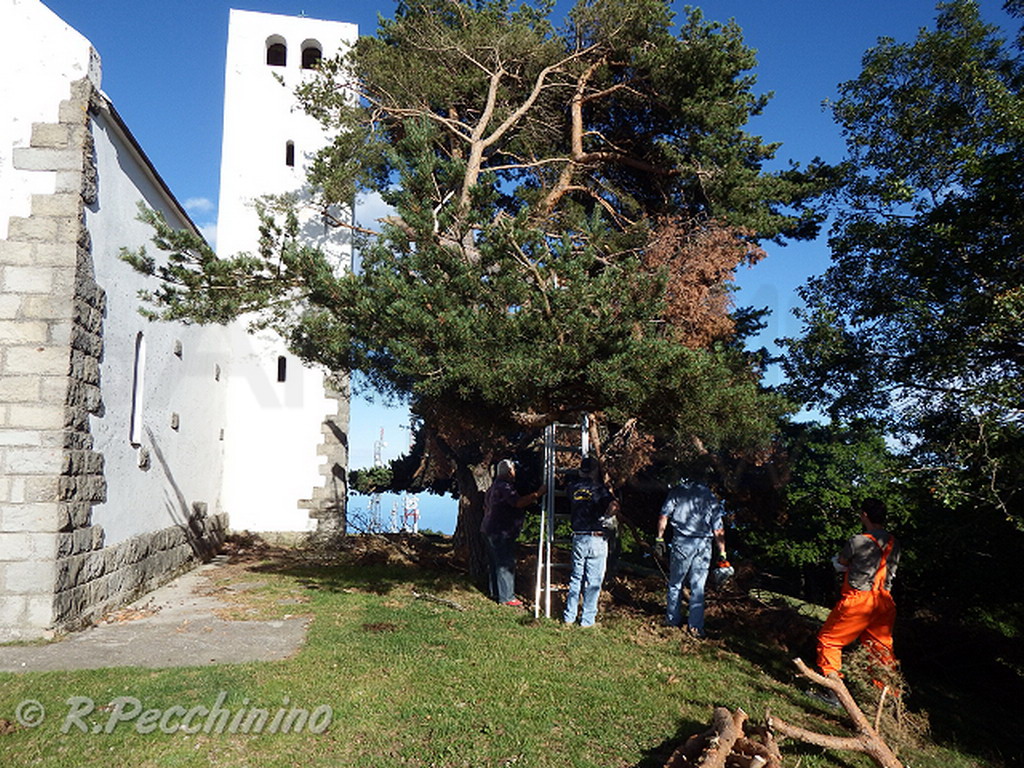 L’intervento immediato della Protezione Civile guidata da Claudio Ammirati e diretta da Valerio Giordano, ha immediatamente messo in sicurezza il tetto della chiesa ed eliminato il pericolo di caduta di rami pesanti. Con motoseghe, hanno eseguito un primo e rilevante alleggerimento di tutti i rami pericolosi. Per completare il lavoro occorrerebbe un intervento immediato da parte dell’ufficio giardini di Sanremo, con una scala mobile attrezzata per eliminare l’ultimo grosso ramo per mettere in sicurezza tutta l’area. Anche le infiltrazioni dell'acqua all’interno della chiesa, sono state in parte eliminate con la pulizia delle canaline di scolo dell’acqua piovana, situate nelle zone perimetrali del tetto, La pulizia all’interno, della chiesa togliendo i sassi e i vetri del rosone rotto, sono state immediatamente eseguite da Giorgio Gasciarino e Bonfante Giuliana.