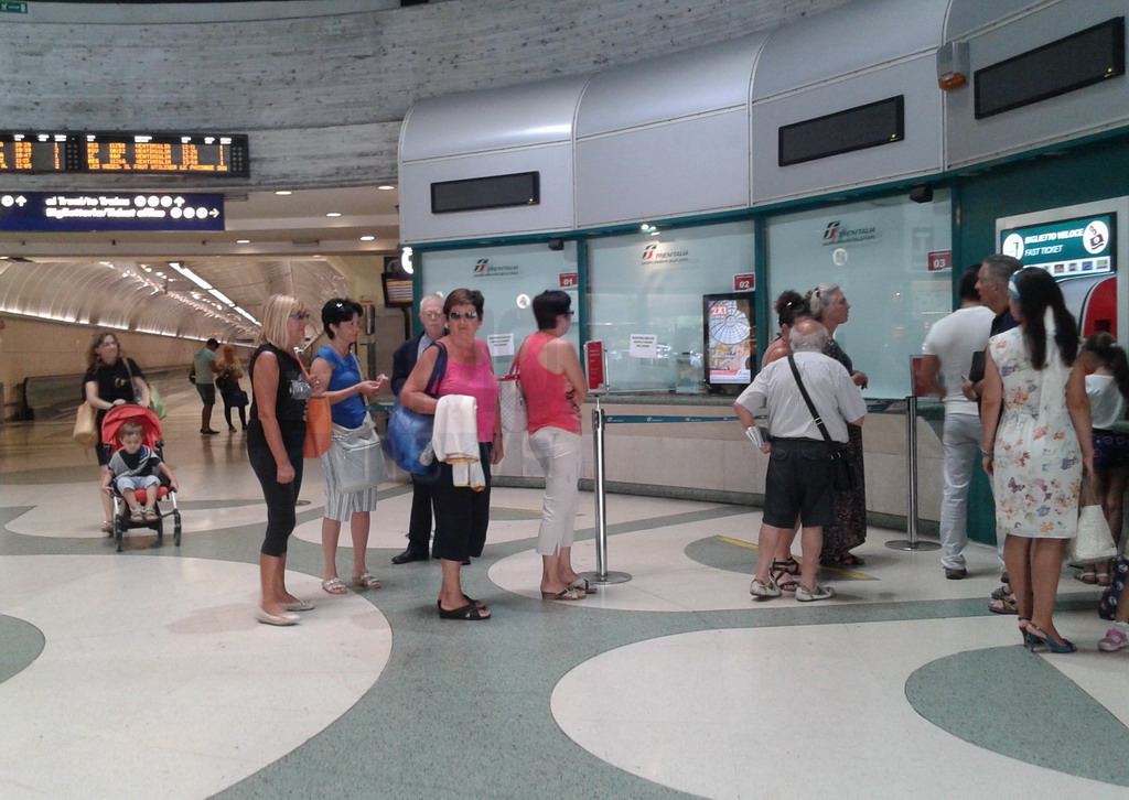 "Buongiorno! Cosi si dice a meno che non devi prendere un treno! Stamattina sono riuscita ad arrivare in anticipo alla stazione ma sono riuscita a perdere il treno! Alle 9.45 di questa mattina sono arrivata in stazione per prendere il treno delle 10.08 e la biglietteria era chiusa per malattia. Cosi mi sono messa in fila per fare il biglietto dalla macchinetta. Scopriamo tutti con grande sorpresa che la macchinetta fa biglietti solo se inserisci il prezzo giusto e accetta solo monete e banconote da 5 euro! Un'impiegata del bar della stazione, seppure molto gentile, purtroppo non può cambiare i soldi a tutti. Alcuni sono andati all'agenzia di viaggi per farsi fare il biglietto pagando di più, altri a farsi cambiare i soldi per farlo! E'un servizio dello stato? Io non mi lamenterei se fosse il primo disagio; una volta chiudono per malattia, più di una volta non fanno i biglietti perché si blocca il computer e quando non ci sono complicazioni non fanno i biglietti perché i posti sull'intercity sono esauriti. Ci sta che una persona stia male, ma bisognerebbe avere qualcuno che la sostituisca almeno. Il 'motto' di Trenitalia è 'Trenitalia ti augura buon viaggio' se almeno riesci a partire (senza aggiungere altri commenti sul viaggio che poi andrai a fare)".