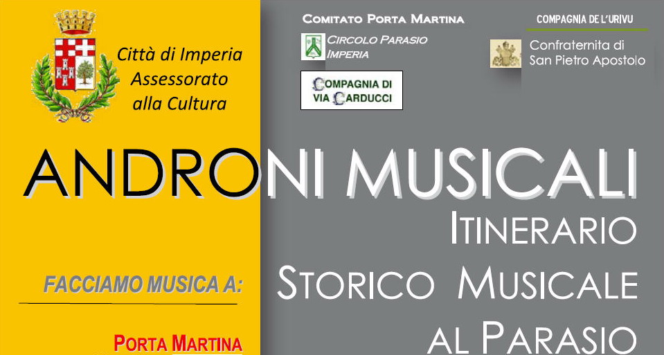 Si svolge mercoledì alle 21, con partenza da piazza Duomo, la manifestazione 'Androni musicali'. Si tratta di un Itinerario Storico Musicale nel borgo più caratteristico di Imperia, il Parasio.