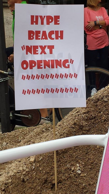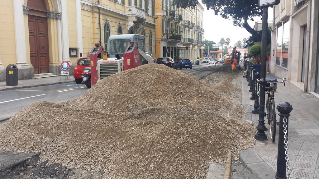 Il titolare di un noto negozio di moda in via Roma, all'angolo con via Carli', ha contestato i lavori che sono terminati ieri, rinominando la zona di fronte al negozio 'Hype beach", con tanto di sdraio e bagnino.