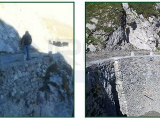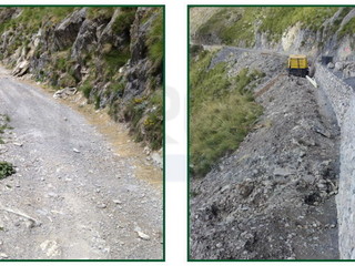 Una prima parte di lavori urgenti è stata già realizzata in seguito a un bando di gara europeo al quale hanno partecipato ben 10 società; i lavori sono iniziati il 25 luglio e sono stati sospesi a causa delle condizioni meteorologiche sfavorevoli, riprendendo poi circa 10 giorni fa. Ad oggi sono stati realizzati circa 1.325 m3 di muri in pietra a vista. Da notare il fatto che non è stato necessario trasportare il materiale per la costruzione del fondo stradale: grazie a moderne scavatrici, è stato utilizzato quello già presente.