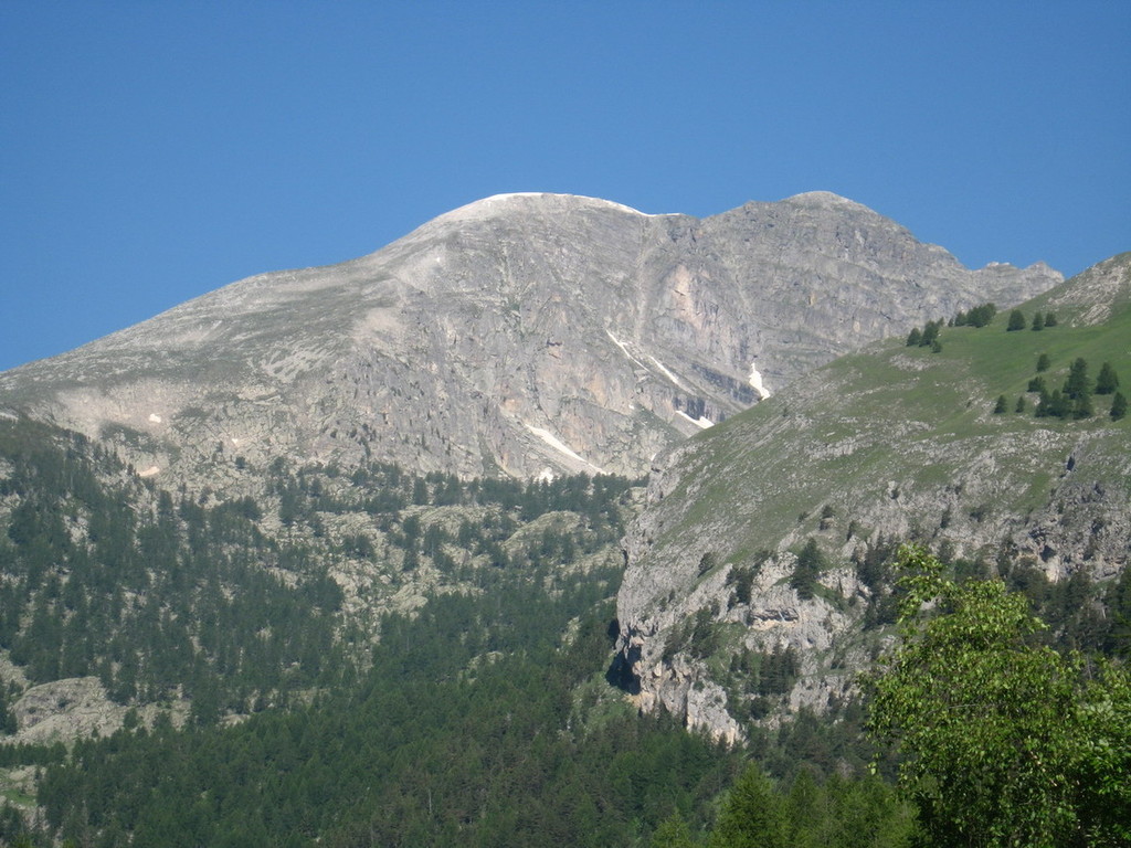Ed ecco occhieggiare con i loro riflessi argentati i laghi Jumeaus, il verde brillante della torbiera… proseguendo, il paesaggio si fa piu’ aspro tra radi larici ecco apparire enormi massi erratici scagliati da chissà quale mano gigante irosa.Sotto di noi la Baisse de Fontanalba in tutta la sua asprezza sovrastata dalla ripida e scoscesa parete del nostro protagonista ospitante nel suo ventre una caserma abbandonata.Ritornando dallo stesso sentiero potremo godere di un’ampia veduta sulle rocce della Cime de Chanvrairee con i loro pinnacoli modellati dalle intemperie e seguendo con gli occhi l’arida distesa erbosa ecco apparirci il fitto bosco del Vallon della Miniere.