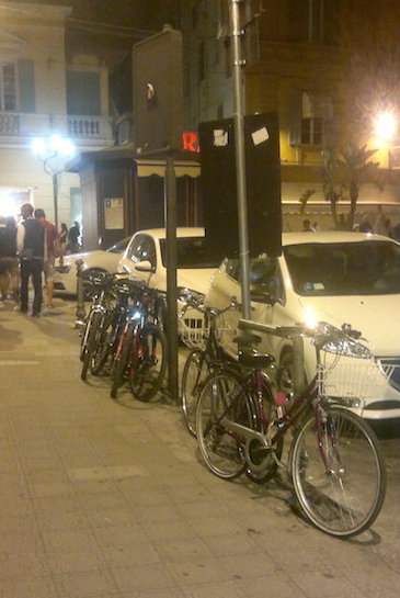 "Caro Sindaco e cari assessori, le foto allegate dimostrano che la Pista Ciclabile ha costituito una nuova tipologia di turista, che ama muoversi in città utilizzando la bicicletta. Non esiste un posto in centro per parcheggiare la bicicletta e proseguire a piedi, quindi si assiste a pali con biciclette collegate... Per una volta nella vita, anticipiamo questa necessità e creiamo osti dedicati al parcheggio biciclette; per una volta dimostriamoci lungimiranti e accogliamo il turista".