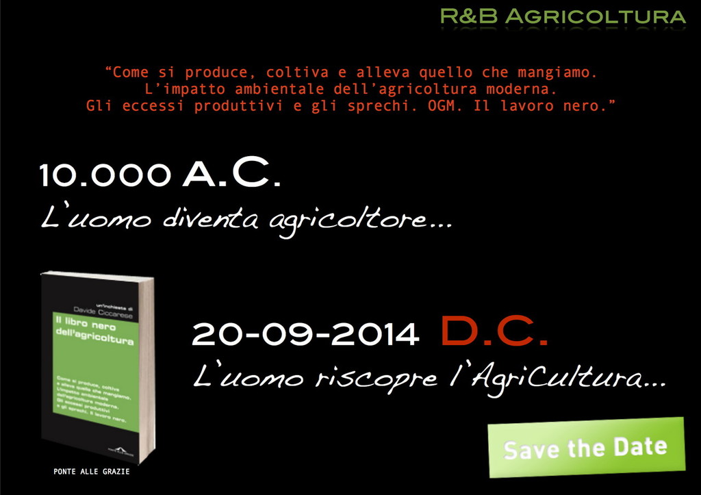 Agricoltura anno zero. Grazie a R&B Agricoltura sabato 20 settembre 2014 alle ore 18, alla Libreria Mondadori di Bordighera si terrà la presentazione de ‘Il Libro nero dell'Agricoltura’ di Davide Ciccarese "al fine di creare un momento di confronto - spiega Marco Damele di R&B Agricoltura - ed iniziative fondamentali per il nostro settore, di informazione e sensibilizzazione su tematiche legate al comparto agricolo dell'estremo ponente ligure .