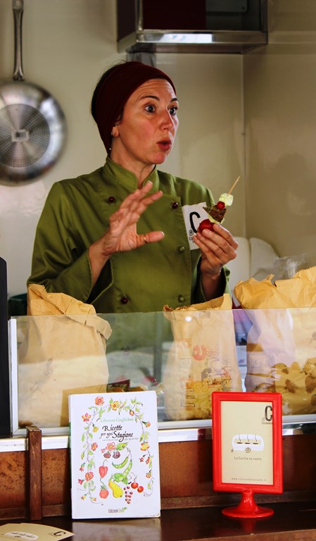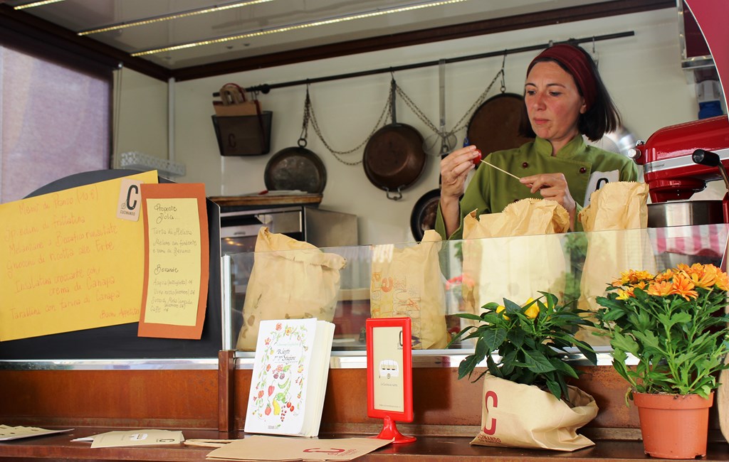 Nell’ambito della manifestazione l’ “Isola dei libri” la cuoca itinerante Sara Samuel a bordo della sua “Cucina su ruote” ha presentato il nuovo progetto di cucina vegetariana di strada, che propone la rivisitazione in chiave gourmet delle ricette del giardiniere di Calvino contenute nel suo ultimo libro “Ricette per ogni stagione” (Edizioni ZEM).