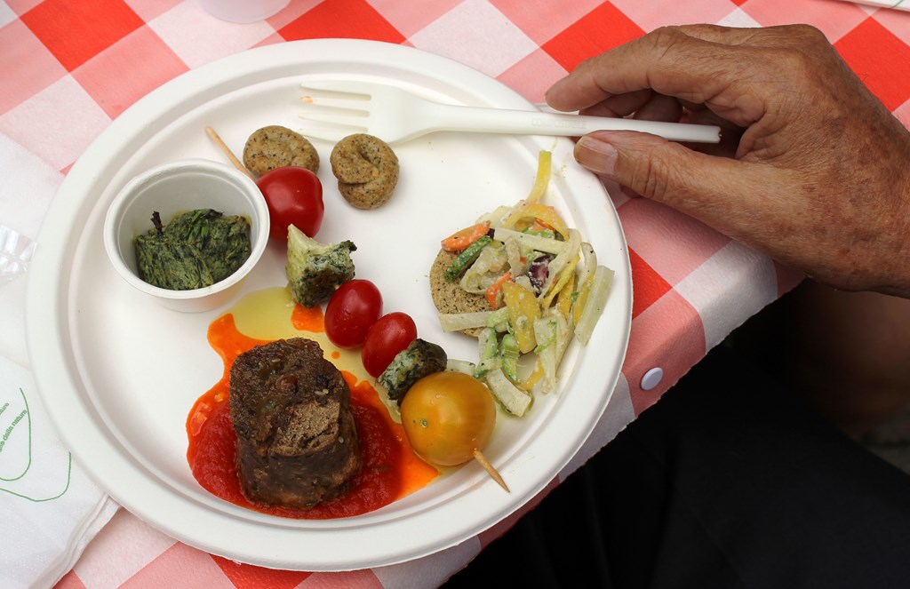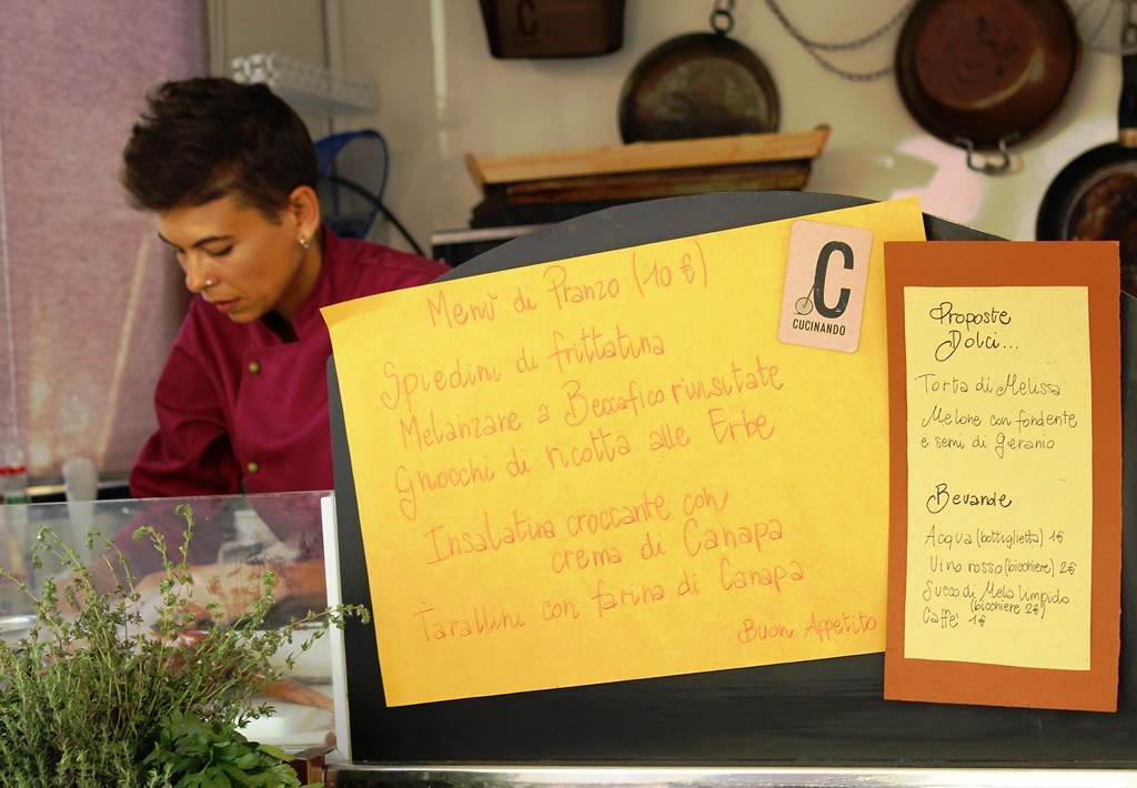 L’evento ha riscosso un grande successo ed un pubblico molto numeroso ha potuto gustare un menù appositamente preparato per l’occasione utilizzando prodotti biologici e rigorosamente di stagione: dalle melanzane a beccafico, alle frittatine con le erbette passando per i gnocchetti e gli spiedini di verdure.