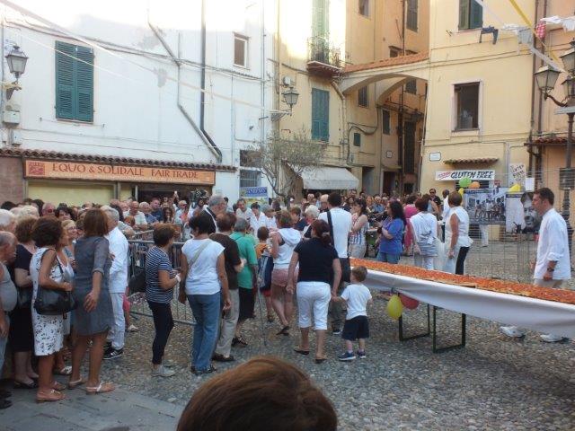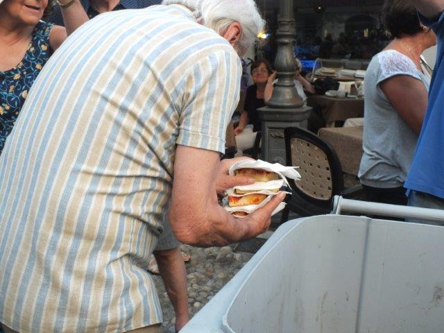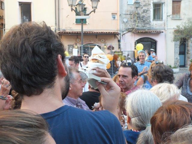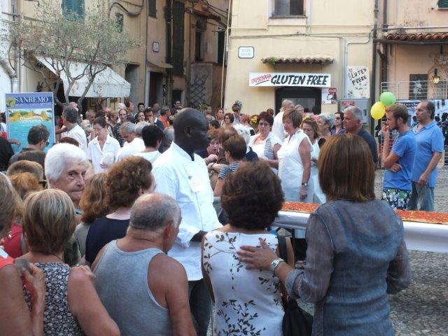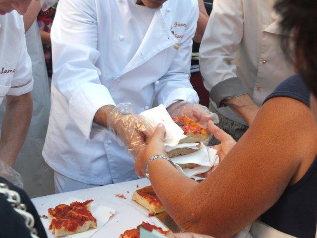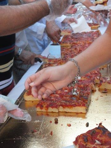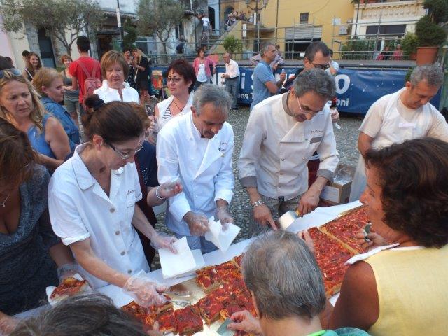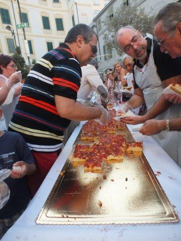 "Altro che Fast Food all'americana, questo è un signor presidio Slow Food, con una Sardenaira lunga 25 metri al CIV di Luce a San Siro. Le foto sono più eloquenti di tante parole, e nel giro di 3 quarti d'ora c'è stato il tutto esaurito. Buonissima".