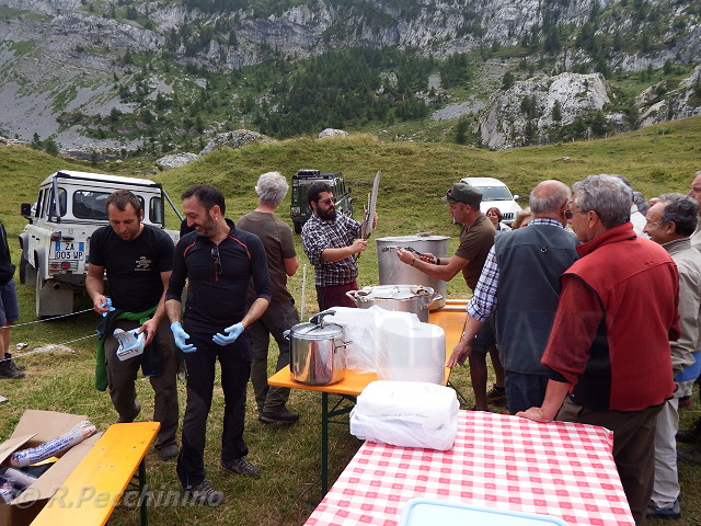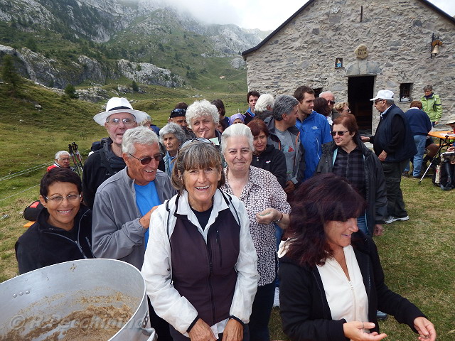 Al termine della cerimonia, è stato servito dal gestore del “Rifugio Don Barbera” Matteo Eula e dai suoi collaboratori un buon piatto di polenta di grano saraceno con spezzatino al barbera, seguito da un ottimo dolce. La bella giornata, la presenza di padre Enrico Urban, la cordialità e l’accoglienza degli “Amici di Sant Erim”, la collaborazione del coro guidato da Augusto Ferrari, la disponibilità del sig.Massimo delle guardie parco del Marguareis, e grazie alla numerosa presenza di fedeli che hanno partecipato, si è conclusa con gioia il 16° incontro al Marguareis.