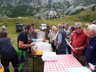 Al termine della cerimonia, è stato servito dal gestore del “Rifugio Don Barbera” Matteo Eula e dai suoi collaboratori un buon piatto di polenta di grano saraceno con spezzatino al barbera, seguito da un ottimo dolce. La bella giornata, la presenza di padre Enrico Urban, la cordialità e l’accoglienza degli “Amici di Sant Erim”, la collaborazione del coro guidato da Augusto Ferrari, la disponibilità del sig.Massimo delle guardie parco del Marguareis, e grazie alla numerosa presenza di fedeli che hanno partecipato, si è conclusa con gioia il 16° incontro al Marguareis.