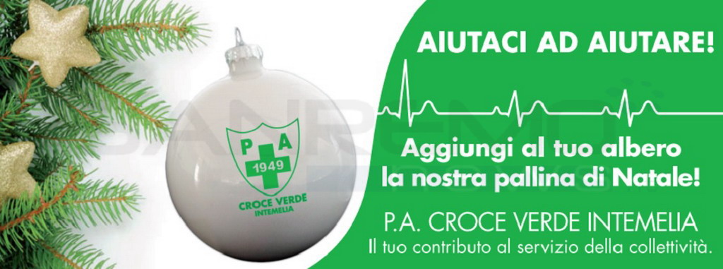 La Croce Verde Intemelia ha pensato, per il prossimo Natale, ad una originale ed esclusiva iniziativa: 'Aggiungi al tuo albero la nostra pallina di Natale - Aiutaci ad aiutare, con il tuo contributo al servizio della collettività'.