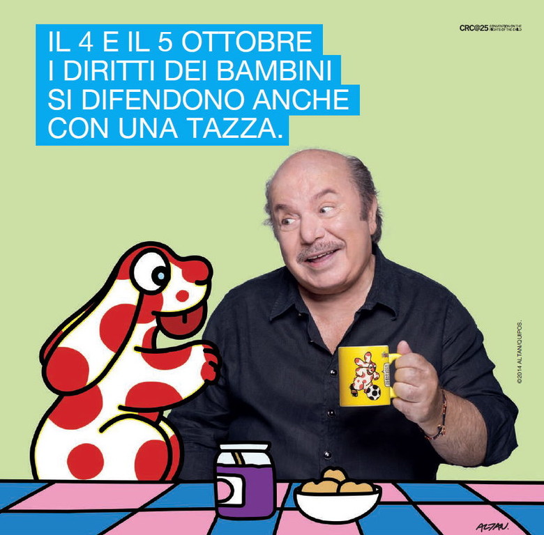 Migliaia di volontari dell’Unicef offriranno al pubblico (a fronte di una donazione minima di 10 euro) una tazza dell’amatissima 'Pimpa'. Sarà possibile scegliere fra sei diversi tipi di tazza, ognuna con colori diversi a seconda del diritto rappresentato: dal diritto all’istruzione, a quello alla nutrizione, al gioco e lo sport, alla salute e all’uguaglianza.