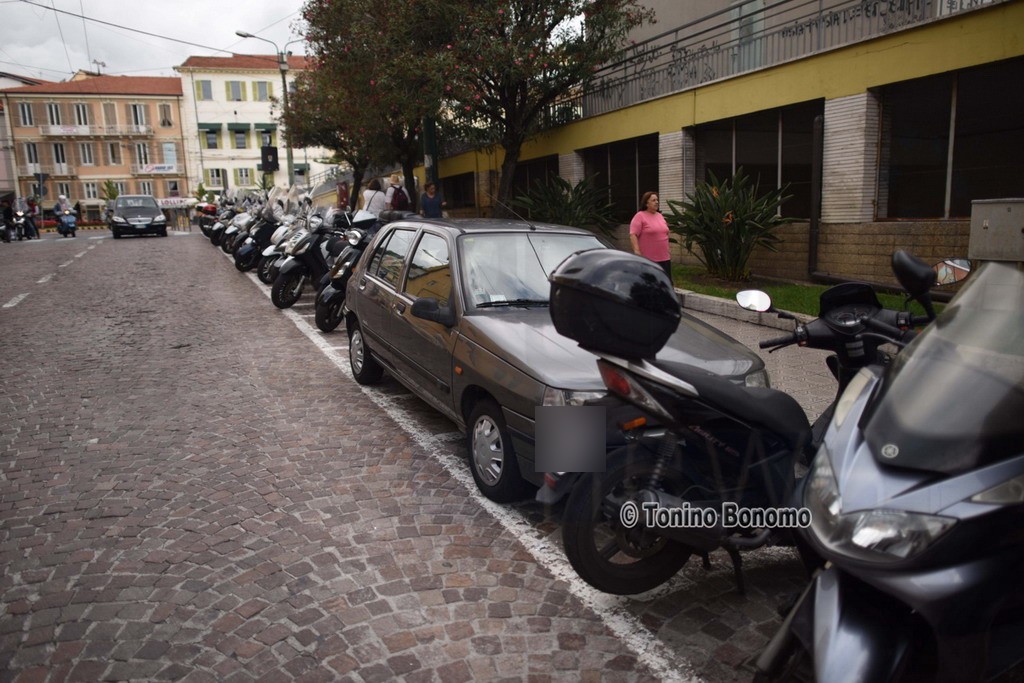 Il caso si ripete ormai da tempo ma, questo pomeriggio l'obiettivo di Tonino Bonomo lo ha colto e noi ve lo proponiamo. Si tratta delle auto che parcheggiano nei posti riservati alle moto.