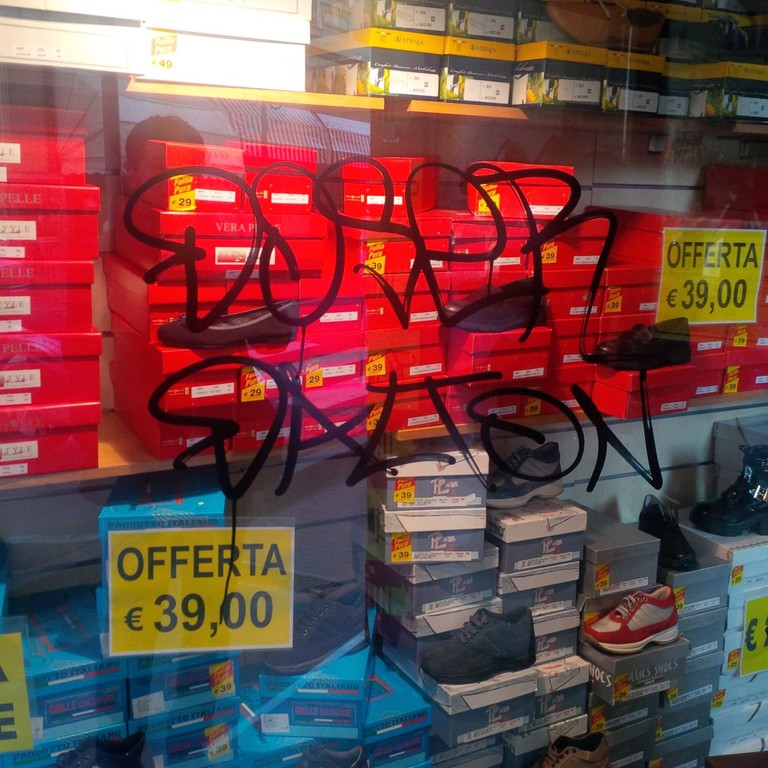 Vandali in azione nella notte a Ventimiglia: imbrattate vetrine e insegne dei negozi di via Mameli