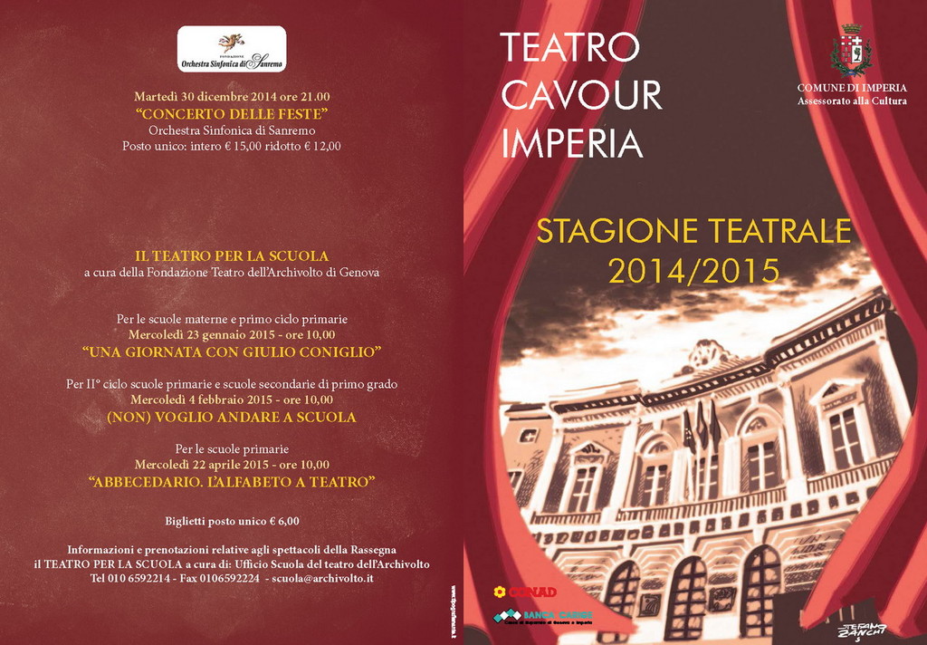 Il dirigente del Settore Cultura e Manifestazioni Giuseppe Enrico sottolinea il grande impegno profuso da tutto il Settore. «Apriremo con 'Risate Sotto le Bombe' con le Sorelle Marinetti e Gianni Fantoni, nomi importanti nel panorama dello spettacolo nazionale, non mancherà la grande lirica con Turandot e La Boheme, capolavori pucciniani, ci sarà la commedia, di Govi con 'Colpi di Timone' che al festival di Borgio Verezzi ha riscosso grande successo, e ancora il Gospel, il Teatro di Dario Fo con attori dello spessore di Antonio Salines e Ugo Dighero, l'atmosfera del Flamenco, la leggerezza dell'operetta con 'Al Cavallino Bianco', la maestria e il talento di un concertista come Uto Ughi. Anche quest'anno – conclude Enrico – sarà riproposta la Sezione Teatro per la Scuola a cura della Fondazione dell'Archivolto di Genova con il coinvolgimento delle scuole primarie e secondarie. Insomma, ci sono tutti gli ingredienti, per una stagione doc».