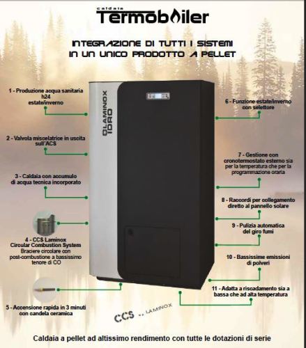 Novità di quest’anno presso Cuore del Calore, oltre all’ampia gamma di prodotti sia a legna che a pellet sono le caldaie termoboiler laminox idro. Si tratta di una nuovissima serie di caldaie ad accumulo, capaci di risolvere ogni tipo di problematica legata alle nuove tecnologie del riscaldamento a pellet. Caldaie a pellet con accumulo incorporato da 100 litri di acqua ,oltre a riscaldare casa produce acqua sanitaria sia in estate che in inverno