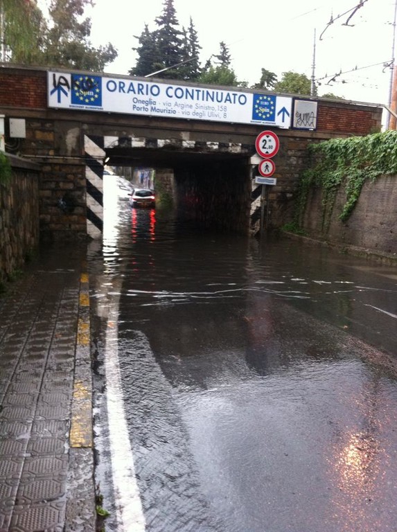 Imperia: anche nel Capoluogo disagi per il maltempo. Allagati i sottopassi di via Argine Sinistro e via Pindemonte