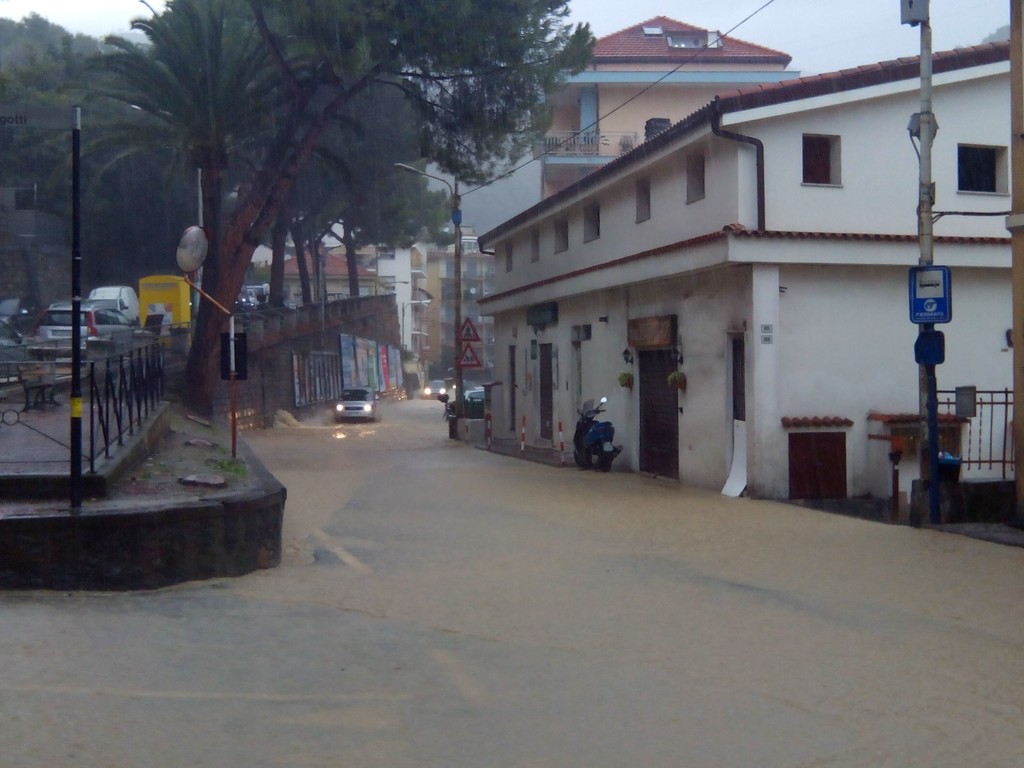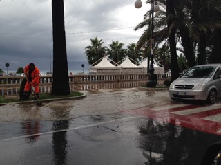 Un violento nubifragio preannunciato da tuoni e fulmini si è abbattuto sul ponente ligure. In tutta la città di Sanremo sono ben evidenti i segni lasciati dal violento acquazzone che sta imperversando da circa