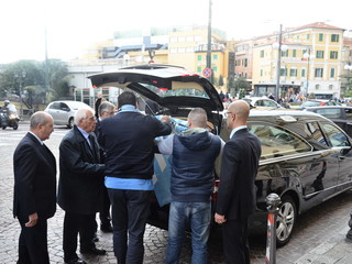 Oggi, oltre ai familiari c'erano anche tanti tifosi, che hanno coperto la bara con una bandiera della Sanremese e, ne siamo certi, il 'Prof' ne sarà stato felice. Rappresentata anche l'Amministrazione, dai Consiglieri Mario Robaldo. Giuseppe Di Meco e Giuseppe Faraldi, ma c'era anche Gianni Berrino, grande tifoso biancoazzurro oltre che ex vice Sindaco e Consigliere. C'era anche Mons. Vittorio Lupi, attuale Vescovo di Savona, ma ex Vicario a Sanremo, molto amico dei Ferrari.