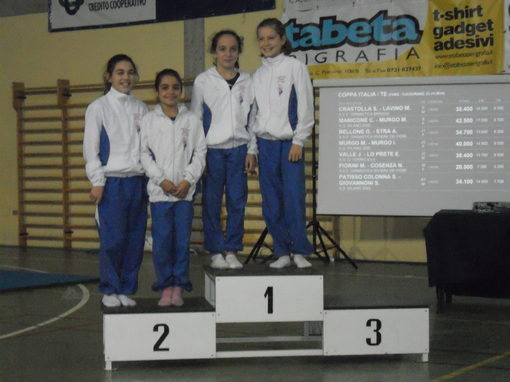 Presso il Palasport Biagioni di Cuccurano di Fano, si sono sfidati ieri i più forti ginnasti italiani della spettacolare disciplina Olimpica del Trampolino Elastico. Sono saliti sui trampolini per eseguire spericolati esercizi con difficoltà tecniche spesso di alto livello, eseguendo un esercizio obbligatorio ed un libero sia a livello individuale che syncro, circa 100 atleti. La Coppa Italia 2014 dopo una intensa giornata di gare, ha visto la meritata vittoria della Milano 2000, seguita dalla Reale Società Ginnastica di Torino e l’Alma Juventus Fano. Al 4° posto, per pochi punti e per certi aspetti del regolamento che in questo momento di cambiamenti del codice dei punteggi non ci ha certo facilitato le cose, si è classificata la Riviera dei Fiori. Il sodalizio ligure poteva tranquillamente confermare i terzi posti ottenuti nei due anni precedenti, ma la giovane squadra, quasi interamente al femminile, si è ben comportata , tornando a casa con un buon numero di podi a livello individuale.
