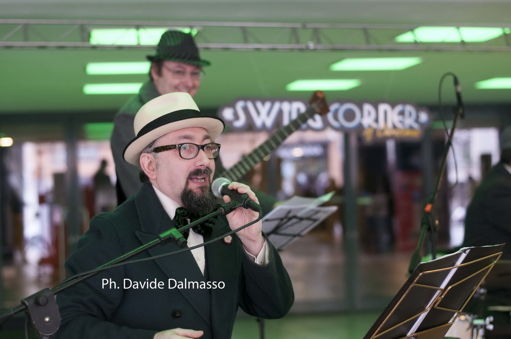 Ieri si è inaugurato lo Swing Corner 2014 nel porticato del Palafiori, un appuntamento fisso domenicale con la musica sincopata. Copiosi applaudi per il cantante Andy Arnaldi e per tutti i musicisti dello Swingtet diretto da Freddy Colt nell'interpretazione di brani di Lelio Luttazzi, Bruno Martino e Nicola Arigliano. Mentre al Palafiori si svolgeva una fiera di tatuaggi il pubblico poteva trovare all'esterno una originale coloritura di classici dello swing italiano. Nelle foto di Davide Dalmasso alcuni momenti del 'matinée' musicale. L'iniziativa, promossa e finanziata dall'Assessorato al Turismo del comune, proseguirà domenica prossima con un omaggio al maestro Gorni Kramer con la fisarmonica di Gianni Martini e il suo trio.