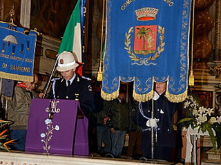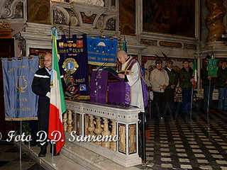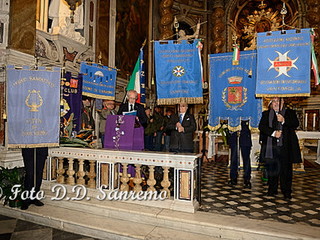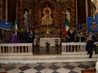 La Santa messa è stata celebrata dal Rettore del Santuario, Mons. Vittorio Marteletti. Il Cav.Uff. Roberto Pecchinino, responsabile organizzatore dell’evento, dopo aver salutato le associazioni presenti con il loro labaro, ha ricordato che l’iniziativa è la continuazione di quanto organizzato lo scorso anno nel dicembre 2013, ed ha come fine lo scambio degli auguri tra le Associazioni e i corpi militari della città, con lo scopo di contribuire a far conoscere alla comunità sanremese, l’opera che svolgono quotidianamente le associazioni di volontariato e le associazioni combattentistiche. Il Sindaco Alberto Biancheri, sempre disponibile all’opera svolta dalle associazioni di Volontariato, ha inviato il Gonfalone della Città. Presente alla cerimonia anche la consigliera Giovanna Negro che ha rappresentato il Sindaco, la giunta e l’amministrazione Comunale.