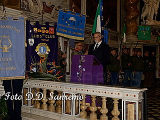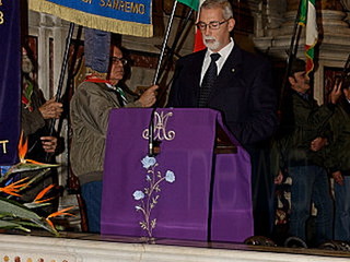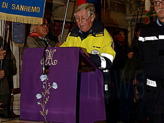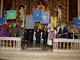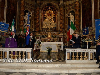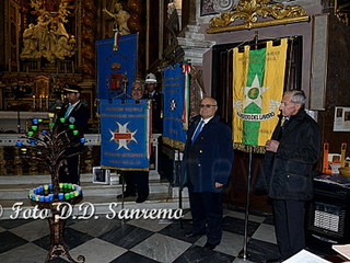 Una cerimonia che si è svolta con solennità e grande partecipazione. Intensa e forte è stata la commozione quando le note di una tromba, si sono diffuse in tutto il Santuario, nell’ascoltare il “Silenzio” suonato da un componente della “Corpo Bandistico Città di Sanremo”, in ricordo di tutti i soci e delle persone care scomparse ma anche per tutti i militari Italiani uccisi, durante le missioni di pace, inviati a difendere i Diritti Umani delle popolazioni oppresse dalla guerra. Una commozione visibile nelle numerose persone che gremivano la chiesa, che è proseguita con la lettura delle preghiere di ogni singola associazione. Numerose le associazioni presenti con il loro labaro e che hanno letto la loro invocazione: Ass.Nazionale Combattenti e Reduci(pres. Gustavo Ottolenghi), Ass. Nazionale Partigiani d’Italia(Pres. Amelia Narciso ha letto la preghiera Franco D’Imporzano), Ass.Nazionale Marinai d’Italia(Pres. Sergio Prevosto), Ass. Nazionale Paracadutisti d’Italia(Pres. Tommaso Russo), i Consoli del Mare(Gianni Manuguerra), Ass. Nazionale Alpini -Gruppo di Sanremo e Verezzo(Pres. Roberto Criscuolo e Massimino Filippi), le squadre di Protezione Civile e Antincendi Boschivi di Sanremo e Ospedaletti(Pres. Claudio Ammirati e Gilberto Chiappa, ha letto la preghiera il volontario G. Gasciarino), i Rangers d’Italia(Pres. Lorenzo Prette), i Maestri del Lavoro(Renato Penasso), il Lions Club Sanremo Host(Pres. Ettore Delbò), l’Ammiraglio Giovanni Biso ha letto la preghiera della Marina, i Chevaliers de Provence(Connetable General d’Italie Piero Semeria), la polizia Municipale presente con il Gonfalone della Città ha letto la preghiera del Vigile Urbano, il cav. Ruta Giuseppe ha letto la preghiera del Carabiniere, l’Ass. Nazionale Insigniti Onorificenze Cavalleresche organizzatore dell’evento con il Cav.Uff. Giuseppe Pappatico(Delegato Intercomunale di Ventimiglia) e il Delegato di Sanremo il Cav.Uff. Roberto Pecchinino, che ha ringraziato tutte le associazioni ed ha letto la Preghiera del “Decorato”.