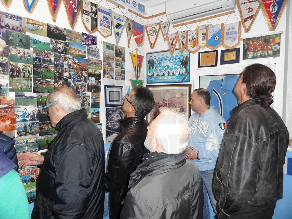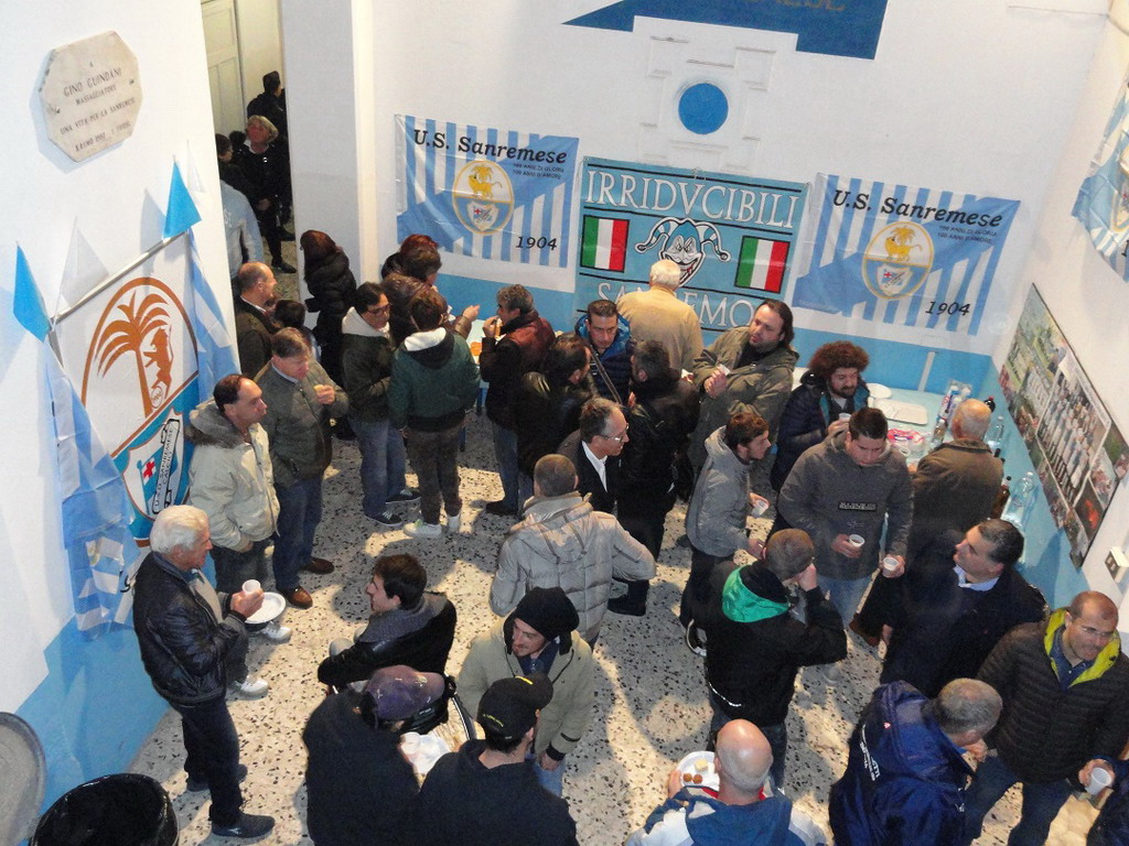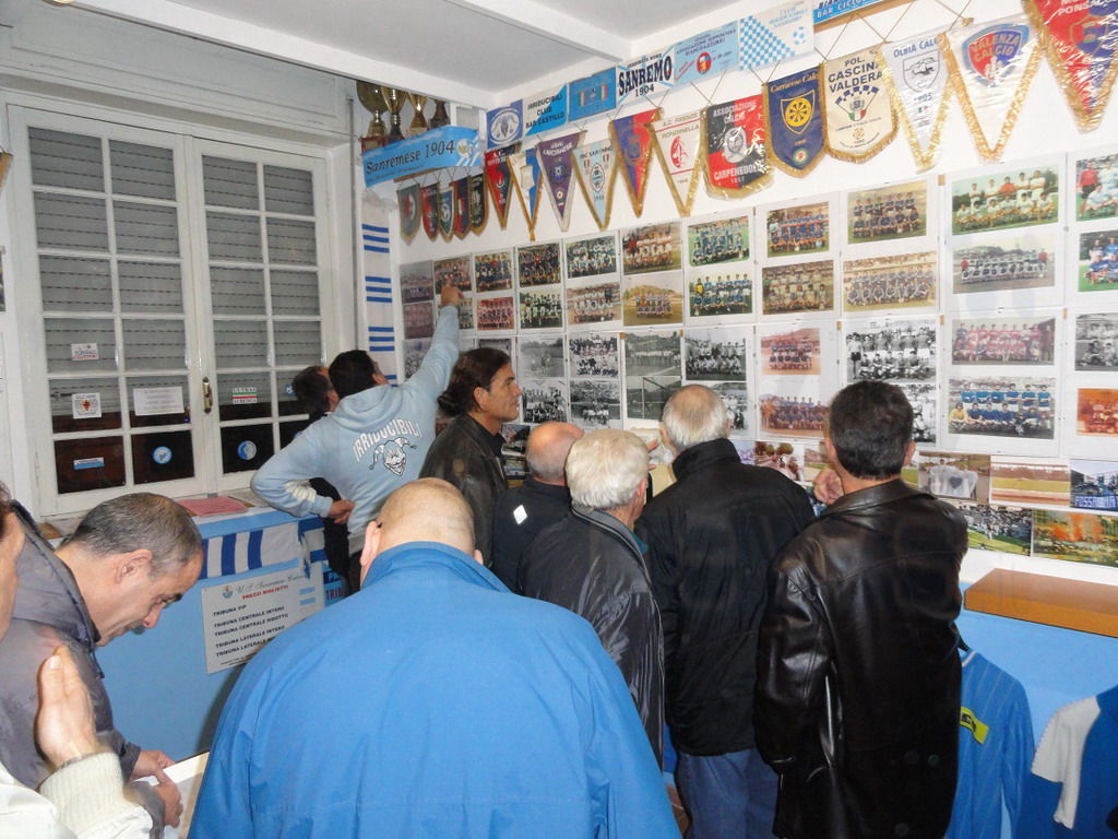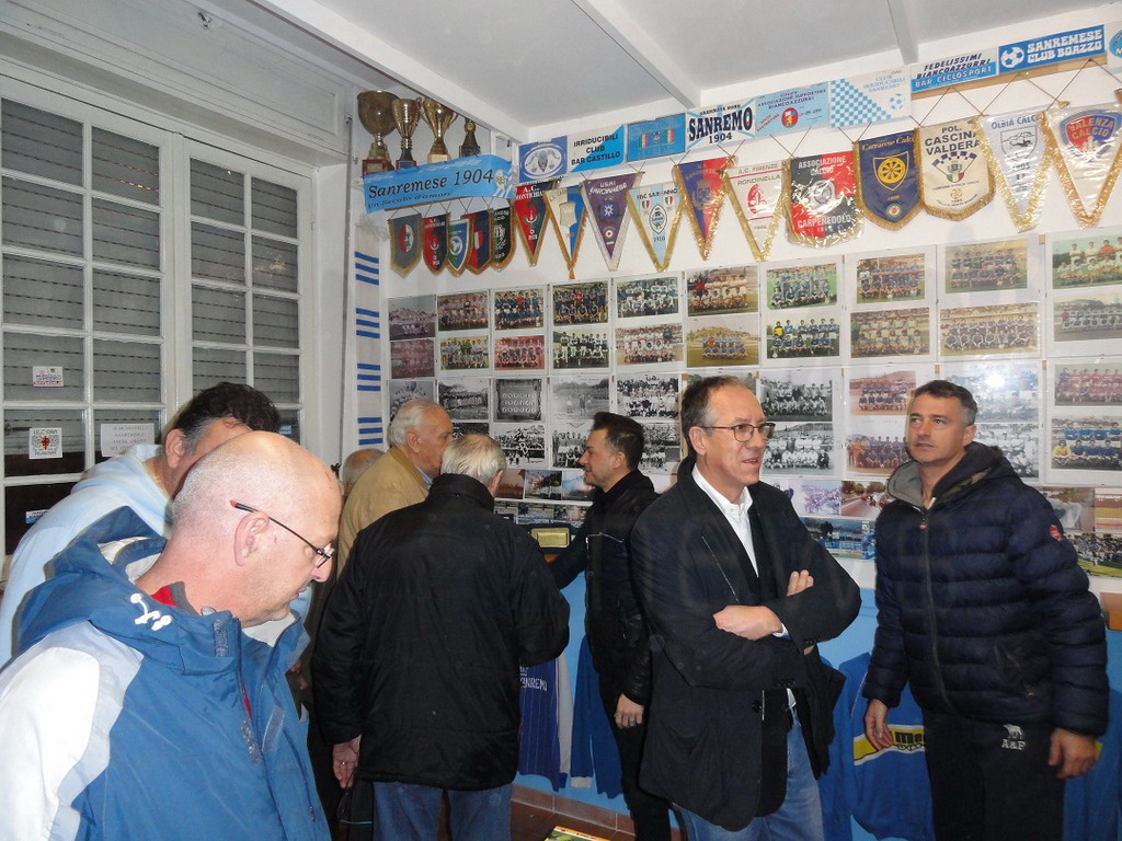 Presenti oltre al Sindaco di Sanremo Biancheri, tanti ex giocatori matuziani, tifosi vecchi e nuovi, e addetti ai lavori che hanno riempito gli occhi ammirando il tanto materiale storico esposto: magliette, gagliardetti, fotografie, giornali, sciarpe e altra memorabilia biancazzurra. Tutto questo è stato possibile grazie all'impegno fattivo dell'Amministrazione Comunale che ha concesso al "Coordinamento" uno spazio prezioso sotto le Tribune dello Stadio di Corso Mazzini. La promessa è stata pertanto mantenuta grazie alla collaborazione dell'Assessore allo sport Dott. Eugenio Nocita, il Consigliere Giuseppe Faraldi e il Sindaco Alberto Biancheri che hanno dimostrato che quando c'è la volontà i fatti possono sostituire tranquillamente le parole. Un impegno che era stato preso con la tifoseria organizzata e che in pochi mesi è diventata una bellissima realtà.
