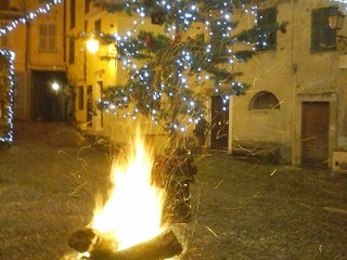 “Vi inviamo le foto della piazza di Castelvittorio, piazza XX Settembre, dove la sera del 24 dicembre viene acceso il fuoco e mantenuto fino al 6 gennaio. Intorno ad esso si radunano grandi e piccini e la Pro Loco offre cioccolata, vin brulé e dolci. Il giorno di Santo Stefano, patrono di Castelvittorio, dopo la processione è usanza radunarsi intorno al fuoco ad ascoltare la banda musicale e l'Amministrazione Comunale distribuisce il calendario del borgo. Quest'anno il 26 dicembre intorno al fuoco c'era anche Sua Eccellenza Monsignor Antonio Suetta, nella foto con Guido Faissola il Castelluzzo più 'grande' di Castelvittorio: 102 anni, ancora in splendida forma. Il 6 gennaio, sempre intorno al fuoco, arriva la Befana del Comune e distribuisce regali a tutti i bambini di Castelvittorio”.