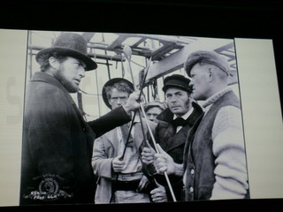 Dopo una breve presentazione della Segretaria Unitre Paola Silvano, Manuguerra si è lanciato in una lezione densa di richiami alla cultura del mare, descrivendo le slide che man mano comparivano ed avendo come sottofondo sonoro gli autentici suoni del mare aperto. L’argomento era il romanzo Moby Dick, ma Manuguerra non si è certo limitato ad accennarne la trama ed i personaggi ma ha fatto anche un po’ vivere ai presenti l’epica stagione nordamericana della caccia alle balene della prima metà dell’ottocento. C’era un contatto epico con il mare ed i grandi mammiferi che lo abitavano, basato su mezzi primitivi come piccole barche da cui venivano lanciati con forza dei ramponi legati a lunghe cime su balene e capodogli, lottando e facendosi trainare fin quando i cetacei si stancavano e venivano colpiti con altri ramponi e poi issati a bordo della nave che fungeva da laboratorio per la lavorazione di questi grandi animali. Oggi la caccia alle balene viene bandita in molti paesi ma allora era importante per le materie prime che dai cetacei si potevano ricavare. Gianni Manuguerra ha paragonato l’olio di balena quasi all’odierno petrolio per l’utilizzo energetico che se ne poteva fare.