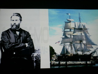 In Moby Dick si trova un po’ tutto il suo vissuto. Il narratore Ismaele (che s’identifica chiaramente con l’autore) fa’ amicizia con un tatuato ramponiere polinesiano chiamato Queequeg, Con lui s’imbarcherà sulla nave baleniera Pequod all’ancora nell’ampia baia dell’isola di Nantucket di fronte alle coste del Massachussets. Questa baia poteva ospitare ben 400 navi e rappresentava un luogo mitico per Melville anche lui del Massachussets ed oggi l’Isola di Nantucket lo ricambia con un interessantissimo museo dell’epopea baleniera e riportando sul proprio vessillo il disegno della balena bianca. Il carismatico capitano Achab pur non disdegnando la cattura di alcune balene durante i tre anni di navigazione, riuscirà a convincere anche i più dubbiosi che il risultato più straordinario sarebbe la cattura di Moby Dick. L’insuccesso sarà clamoroso, moriranno uno dopo l’altro e lo stesso Achab verrà trascinato sul fondo impigliato nella cima del rampone con cui aveva colpito Moby Dick e la stessa nave verrà affondata dall’enorme cetaceo. La finzione letteraria salverà il narratore Ismaele che aggrappato ad una bara sopravviverà.