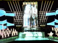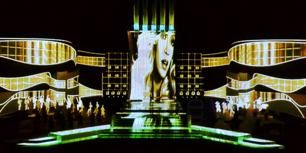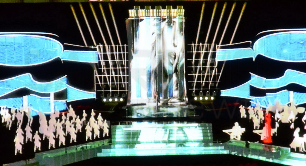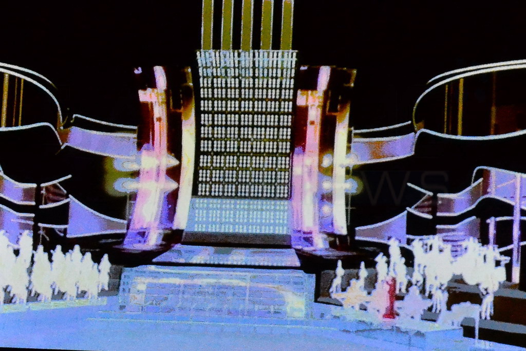 Al centro del palco ci sarà la temutissima scala, da sempre protagonista al Festival. Completamente motorizzata, avrà gradini che appaiono e scompaiono all'occorrenza, consentendo l'ingresso agli artisti al livello del palco o da un ballatoio sollevato. La scala 'invisibile' sarà leggera e completamente trasparente e si smaterializzerà dietro una parete di luce in alcuni momenti, creando ingressi in scena sorprendenti. Per i telespettatori l'effetto complessivo sarà quello di una scatola televisiva che, al ritmo delle canzoni in gara e delle performance degli attesi ospiti italiani e internazionali del Festival, sarà animata da video, luci, audio, grafica ed orchestra protagonisti di volta in volta e, tutti insieme, integrati in un grande contenitore animato in continua evoluzione.