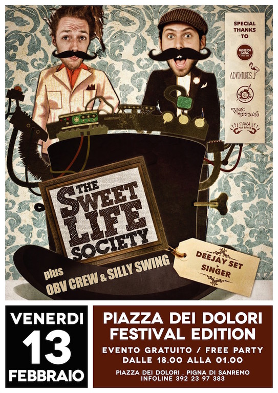 Per la prima serata di Venerdì 13, dalle ore 18.00 all'01.00, la programmazione artistica prevede Drum 'n' Bass ed Electro Swing col supporto dell'organizzazione musicale OBV Crew, più l'esclusivo Dj set di The Sweet Life Society. Sabato 14, con lo stesso orario ma con un registro musicale diverso, a farvi ballare saranno le sonorità tra la House e la Techno di Adventures e Riviera Gang. In consolle i Two Kidz on a Deck più uno speciale showcase degli artisti di Riviera Gang. La festa di Sabato proseguirà cambiando location e spostandosi dalla città vecchia ai Bagni Matuzia, dall'01.00 in poi, per un afterparty in compagnia di Andrea Introvigne, Antonello Love, Two Kidz on a Deck, Simone Novembrino e Steaf.