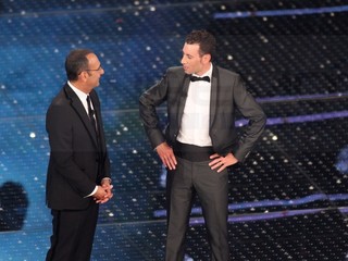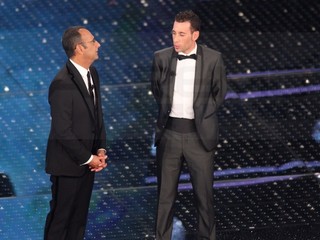 Vincenzo Nibali, elegantissimo sul palco dell'Ariston, lancia il giro d'Italia 2015, che partirà il prossimo 9 maggio proprio da Sanremo, con la tappa a cronometro di 24 chilometri (non 18, come ha detto!), fino a San Lorenzo al Mare.