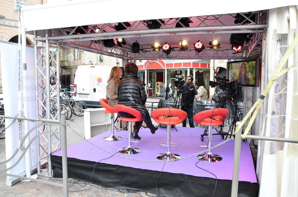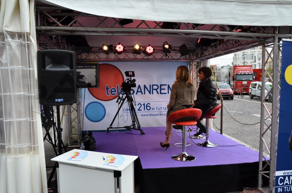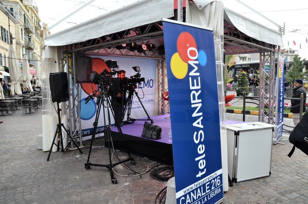 "TeleSanremo segue tutta la settimana del Festival dalla postazione privilegiata di piazza Colombo, dove sono presenti un palco e una regia mobile e radiocamere in grado di raccontare in diretta tutto quel che accade intorno alla kermesse canora. L'invito per chi volesse conoscere TeleSanremo più da vicino è di venire a trovarci fino a sabato sera".