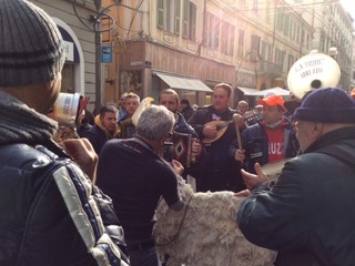 C'è un clima davvero festaiolo a Sanremo. In giro trovi gente di ogni tipo, compresa questa "band" scalcagnata, che si definisce "La Tribù Abruzzo", con una mascotte, la pecora, un omaggio alle tradizioni e alla storia di questa bellissima regione.