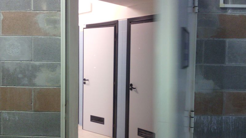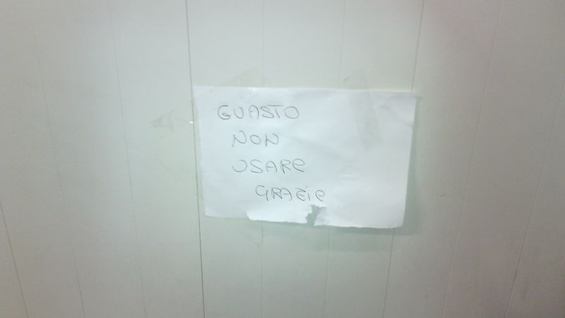 Due bagni sono stati chiusi ed un avviso scritto a penna informa che sono inagibili, all'altro, che era al buio, non è stata ancora sostituita la lampadina.