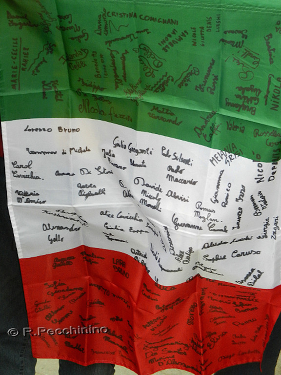 Soddisfazione del Presidente Ettore Delbò, che ha dichiarato: martedì 17 marzo a Sanremo si è celebrata una delle più belle Feste dedicate alla nostra Bandiera e alla nostra Costituzione. Come Lions, abbiamo fatto firmare un tricolore da tutti i ragazzi che erano presenti alla cerimonia, non solo come ricordo della giornata, ma come importante testimonianza dei valori e dell’unità del nostro paese. Il nostro socio cav.uff. Roberto Pecchinino, provvederà a farla consegnare nelle prossime settimane al nostro Presidente della Repubblica, in segno di stima e rispetto di tutti i ragazzi di Sanremo, per la Bandiera e la Costituzione, con l’augurio per l’alta carica ricevuta, come nostro Presidente della Repubblica.