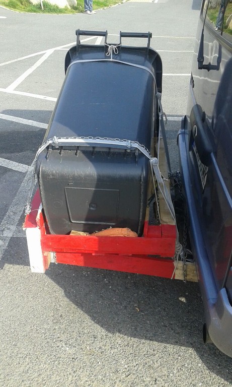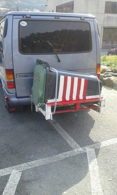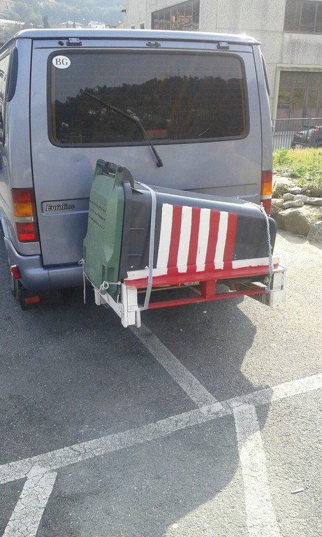 Gli agenti intervenuti hanno ipotizzato che per l'animale potesse esserci una situazione di sofferenza, così hanno chiamato il veterinario dell'Asl che non ha però ravvisato maltrattamenti e pericoli. La Stradale ha comunque contravvenzionato i due per via della targa illeggibile del mezzo e per via della sporgenza laterale del bidone che impediva la visuale alla guida