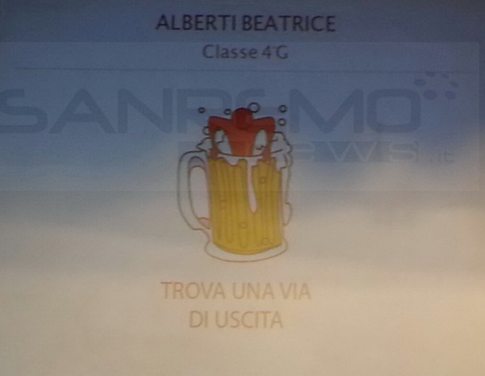 I loghi che saranno l’espressione di immediato riconoscimento per il progetto sono infatti prodotti dagli studenti del liceo artistico di imperia e inoltre, durante l’incontro sono stati proiettati due brevi filmati autoprodotti dalla IV B dell’istituto tecnico turistico di Sanremo e dalla IV C del liceo psico pedagogico di Imperia aventi come tema appunto l’abuso di alcol rendendoli protagonisti delle iniziative di sensibilizzazione attraverso l’uso dei modi di espressione tipicamente “giovanili” per un dialogo alla pari.