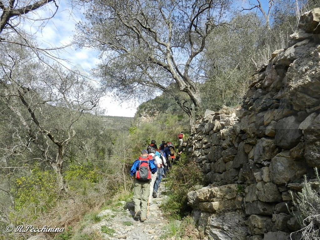 Un percorso suggestivo immerso nella natura selvaggia della Valle Barbaira, dove la macchia Mediterranea si rivelava agli escursionisti, in tutta la sua bellezza con le prime fioriture, tra ginepri, pini d’Aleppo e mediterranei, olivi centenari, si scoprivano i colori e i profumi di erbe aromatiche e rare orchidee. Grazie alla presenza dell’esperto botanico Marco Alberti Dottore Forestale, ogni segreto della natura veniva svelato agli entusiasti escursionisti, affascinati dalla bellezza dei fiori e delle piante, ma soprattutto dalle parole del dott. Alberti, nel sapere che l’entroterra della Provincia di Imperia, conta duemilacinquecento specie botaniche su tremila dell’intera regione. Una immensa ricchezza floreale, sfortunatamente sconosciuta e non valorizzata dagli stessi imperiesi.