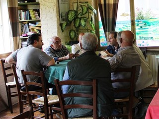 Sia all’interno che all’esterno del ristorante si trovano gli uomini del paese di tutte le età intenti a giocare a carte con grande serietà e impegno. Fra questi giocatori potete anche trovare il Sindaco del paese, che porta il nome, Orengo, di una delle due famiglie più importanti del paese, insieme a quella dei Rebaudo. Sentirete parlare dei problemi del paese, dai dispetti dei cinghiali e dei tassi, delle fatiche dell’agricoltura accompagnate da infinite discussioni sulla raccolta delle olive, dei funghi e sulle battute di caccia.