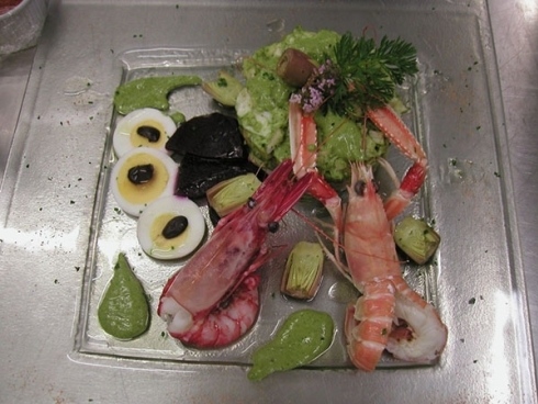 Dalla cucina escono in successione ottimi antipasti tra cui i filetti di pescatrice su mousseline di patate, salsa balsamica e porri fritti, i calamaretti di lampara cotti in zemino e chiodini di bosco, oppure il fegato d’oca cotto al torcione, confettura di cipolle di Tropea, riduzione al balsamico, pan brioche con un bicchiere di Sauternes.