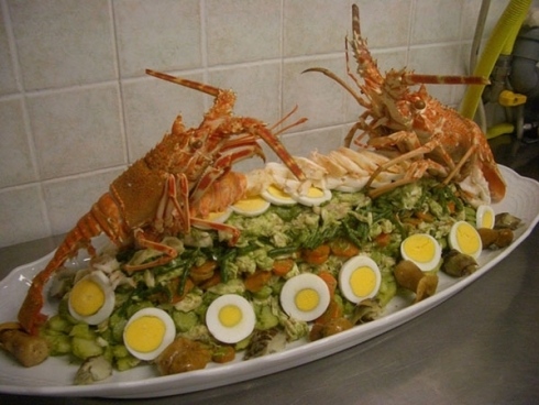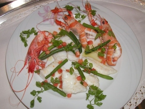 Tra i primi troviamo i ravioli con funghi porcini, la zuppa di pesce senza spine con pane tostato, San Pietro spinato cotto in tegame con le olive taggiasche e zoccolo di patate.