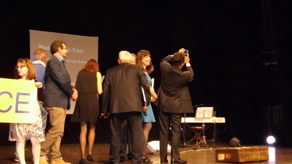 Il pubblico è stato molto vicino al recital applaudendo calorosamente ogni singolo passaggio sia vocale che musicale accettando anche quei momenti un po’ sottotono della prima mezzora comprensibili ma migliorabili, per riprendendosi alla grande nella seconda parte, coinvolgendo in tutto per tutto le persone presenti in sala formate da suore, personalità e gente comune che si sono letteralmente scatenati al gospel finale dello spettacolo ballando e battendo le mani andando a ritmo con i 4 artisti sul palco,incluse due splendide bimbe di 8 anni nel tenere stretto con emozione tra le loro manine il cartello ‘Pace’ perchè loro sono il nostro futuro.