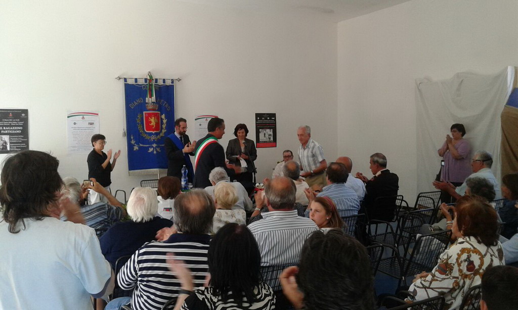 Alla presenza delle autorità della Provincia e della Regione,dell`ANPI e dell`Isrecim di Imperia, il Sindaco Claudio Mucilli ed il Presidente Natta hanno consegnato ai familiari ed agli ultimi partigiani, un " Attestato di Riconoscenza".Si sono succedute le memorie del partigiano Primo Bonifazio,il quale ha voluto ricordare Pietro Glorio "Gambin" figura storica della Resistenza Sampietrese, e la presentazione del libro, fresco di stampa, dello scrittore Claudio Ceotto "Un giorno con il Comandante Gino ed i ragazzi della Cichero",omaggio alla sua Genova ed alla sua Famiglia Partigiana.