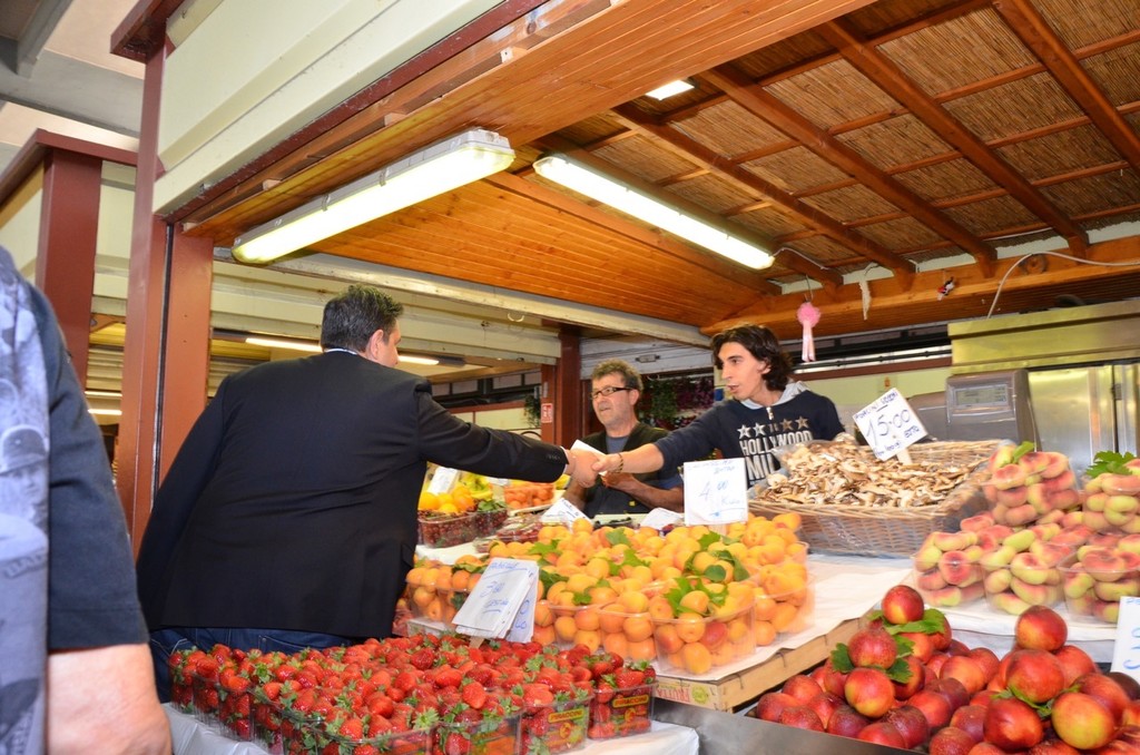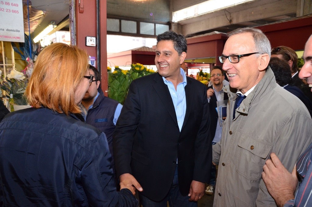 Il candidato di centrodestra dopo aver salutato i simpatizzanti in via della Repubblica dove era allestito un gazebo elettorale si è dedicato ad una visita nella città di confine. Toti ha fatto capolino al mercato comunale dove ha trovato ad attenderlo i frontalieri. Il candidato del centrodestra si è impegnato firmando una proposta della categoria per mettere tra le deleghe di giunta una che si occupi in maniera specifica dei frontalieri e delle loro problematiche.