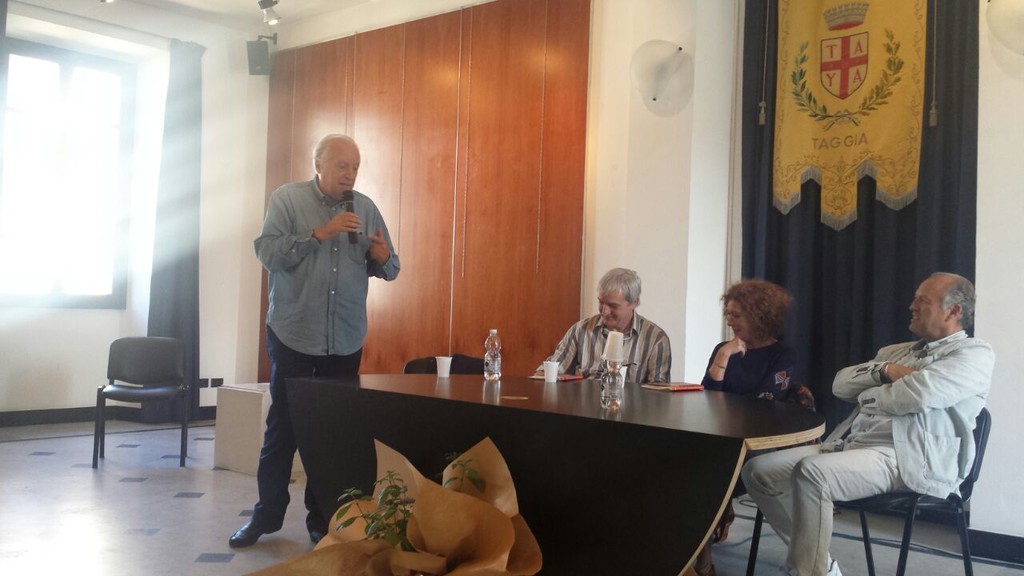 L'opera è stata presentata, a Villa Boselli, agli studenti dello stesso alberghiero. Sono intervenuti, oltre al preside Conti, i docenti Antonio Panizzi e Manuela Ormea che hanno rivolto domande all'illustre ospite e alla signora e letto qualche passo del loro libro. Un volumetto che si sofferma su episodi ed esperienze dello scrittore e poeta, legati al cibo, in quattro continenti e, insieme, presenta novantanove ricette di tutto il mondo elaborate dalla signora Maria Rosa. Non sono mancati divertenti siparietti con i due coniugi che hanno accennato al loro passato da insegnanti.